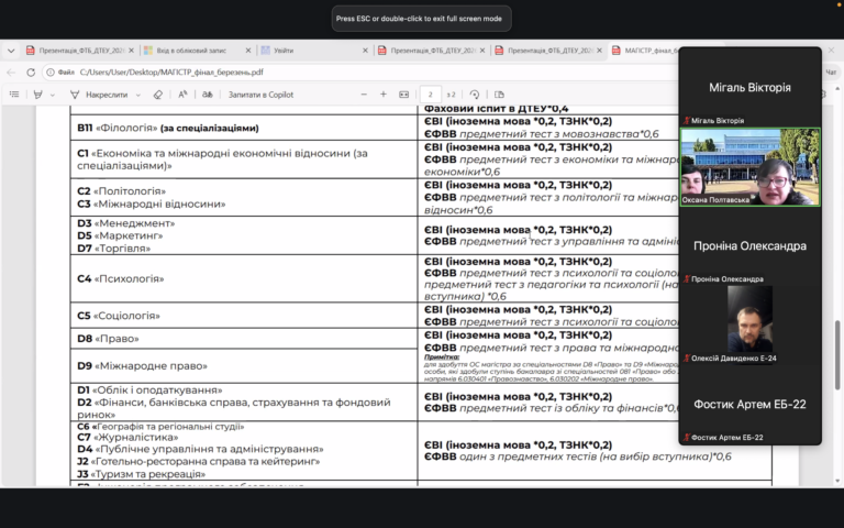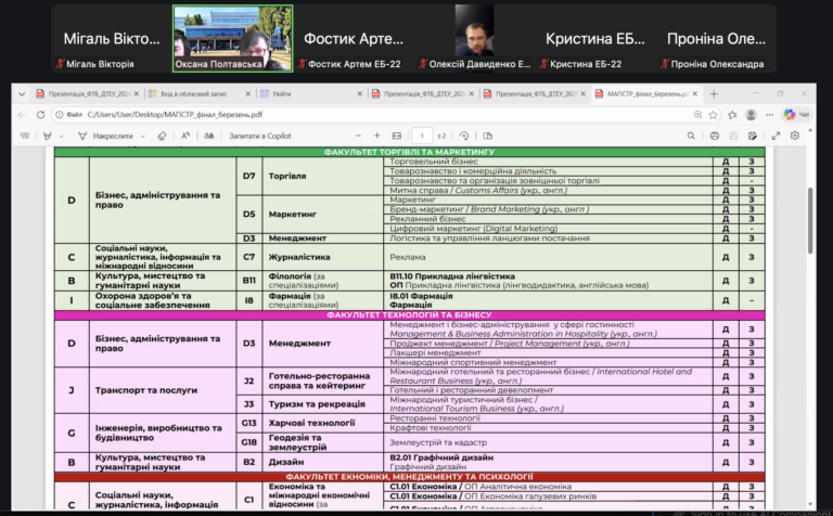 Представники університету розповіли про переваги навчання в ДТЕУ, можливості проходження практики, участі в міжнародних програмах, а також подальшого працевлаштування. Учасники заходу мали змогу поставити запитання щодо вступної кампанії, вимог до документів та організації навчального процесу.